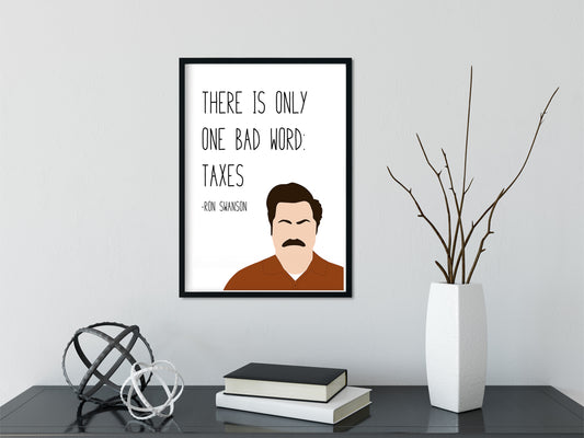 Ron Swanson " Taxes " Quote Print | Parks and Recreation Prints